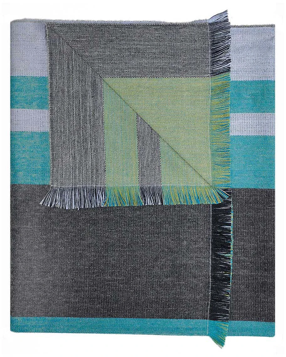 Lightweight yet toasty, durable yet soft, this fringed throw is also hypoallergenic. And because it features a different palette of stripes on each side, it gives you two chic looks in one.