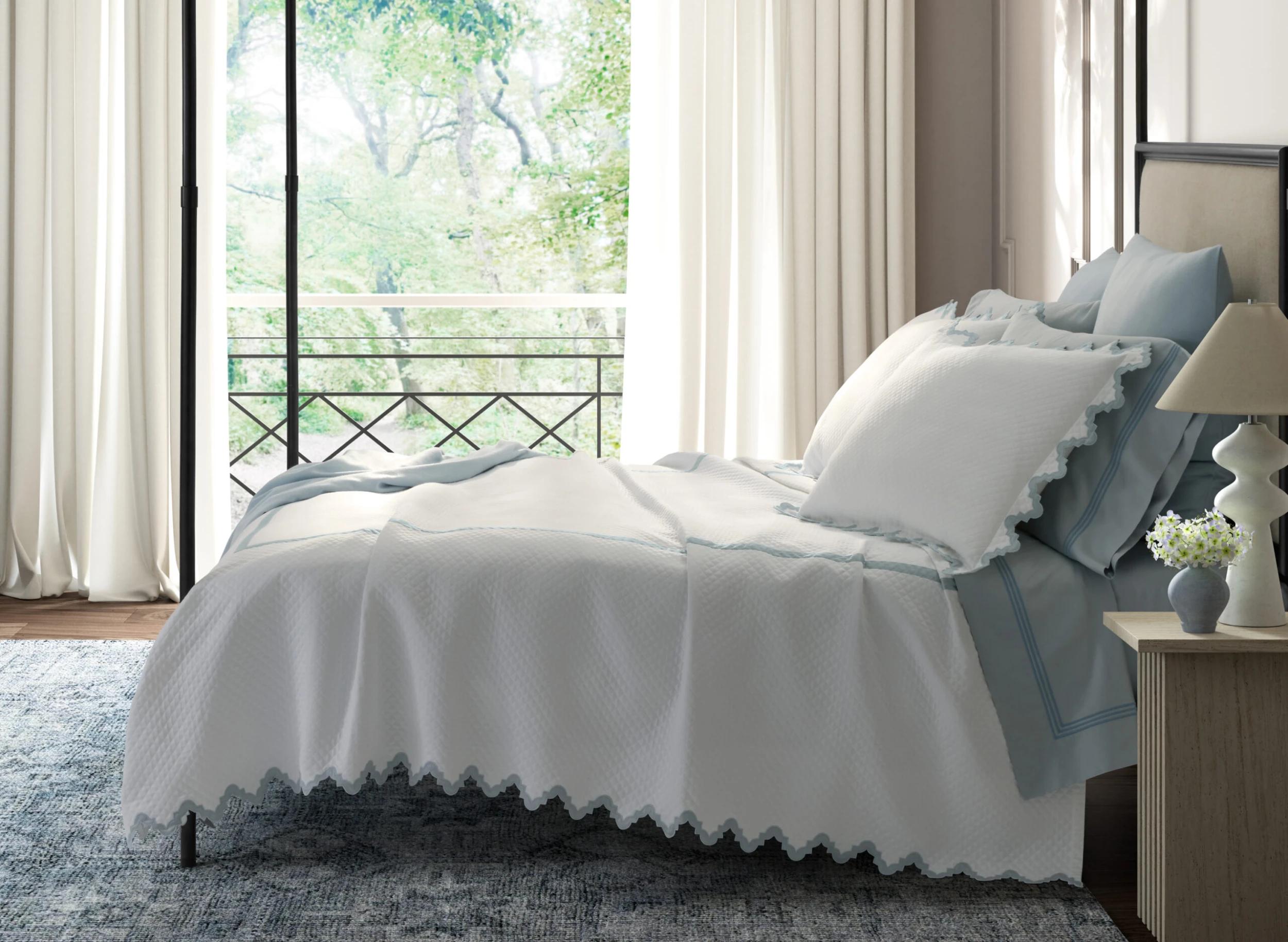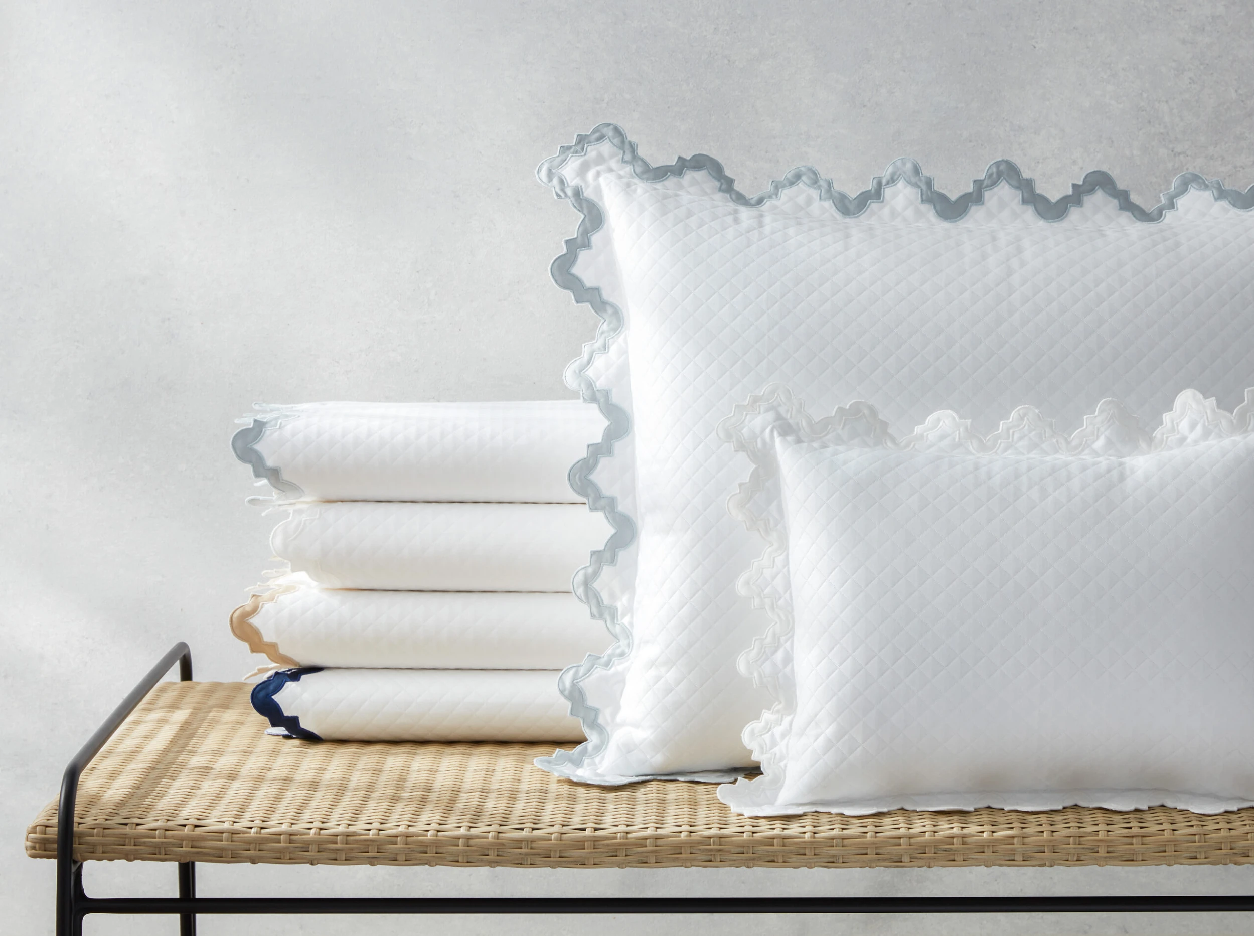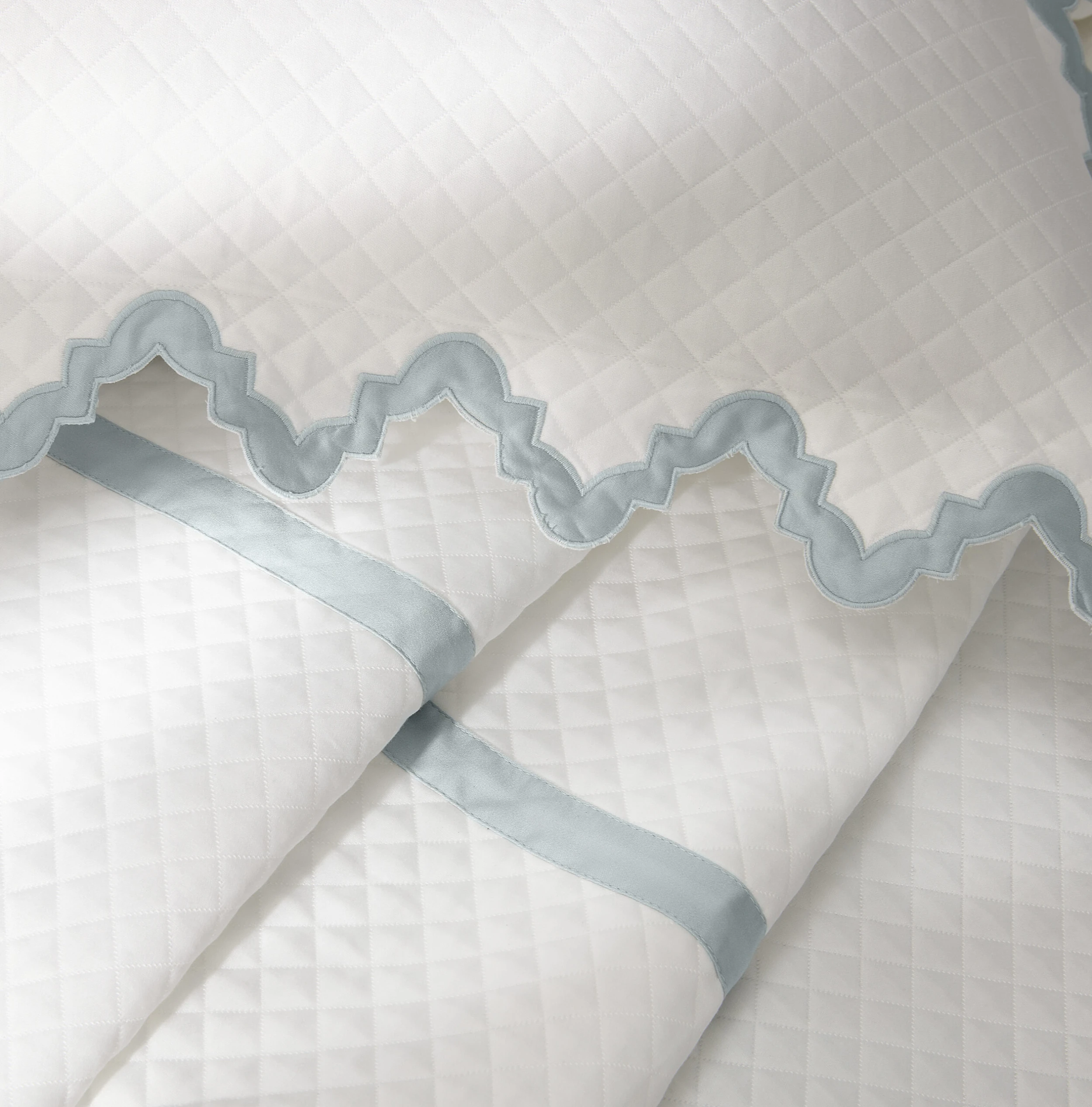 Morrocan tiles inspired the zigzag shape of this coverlet’s borders, which are trimmed in a sateen appliqué. Made of matelassé cotton, the coverlet is delightfully soft, has a fluid drape, and is machine washable. And like all other Matouk fabrics, it’s OEKO-TEX Standard 100 certified, meaning it’s safe for you and for the planet.