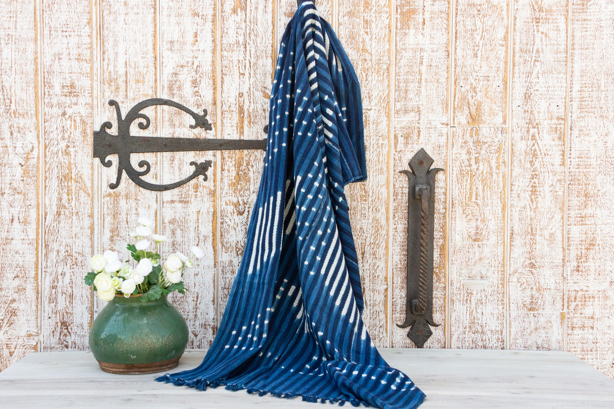 These lovely Malian mud cloths are hand-woven fabrics dyed with plant based indigo fermented mud and washed to reveal intricate designs. This dye technique is quite labor intensive and everything is done by hand. These cloths have an important traditional values in Malian cultures. In Mali the mud cloth is worn by hunters and brighter colored cloths were used for rituals.