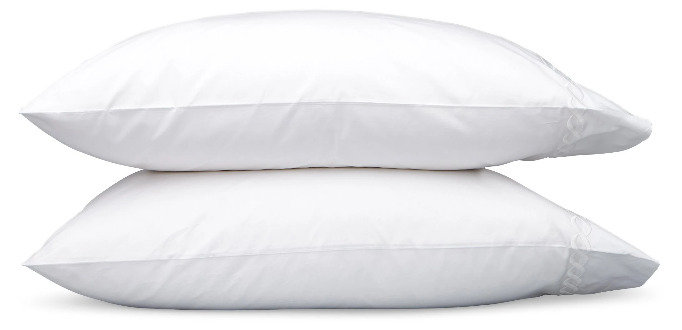 An embroidered chain motif accents this pair of crisp, cotton percale pillowcases with traditional flair. All Matouk fabrics are OEKO-TEX Standard 100 certified, meaning they are safe for you and for the planet.