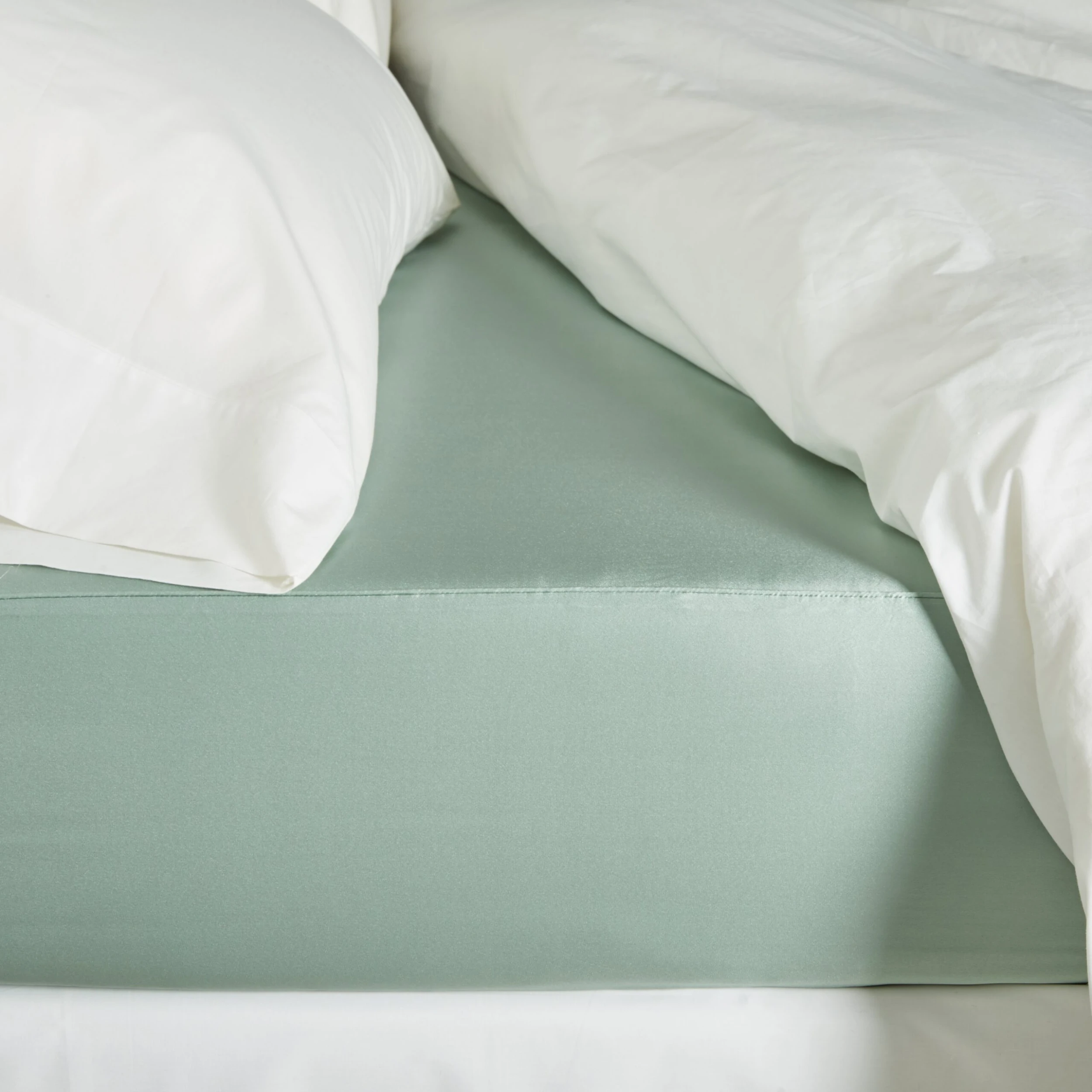 Crafted of sumptuous silk in a soft seafoam hue, this fitted sheet is practical enough for everyday use, yet luxurious enough for even the most pampered.