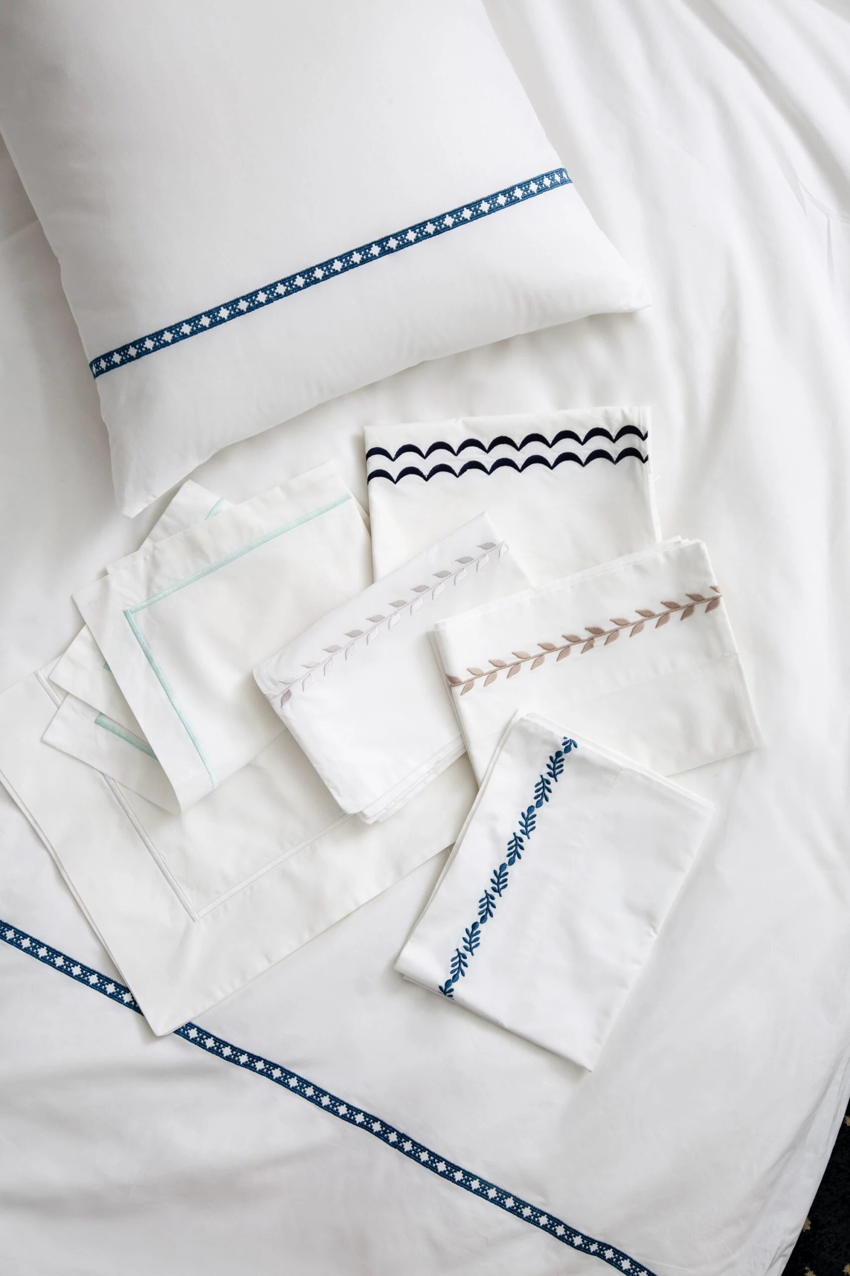 dimensions: flat sheet, 90″ x 106″; fitted sheet, 60″ x 80″; standard pillowcases, 21″ x 32″