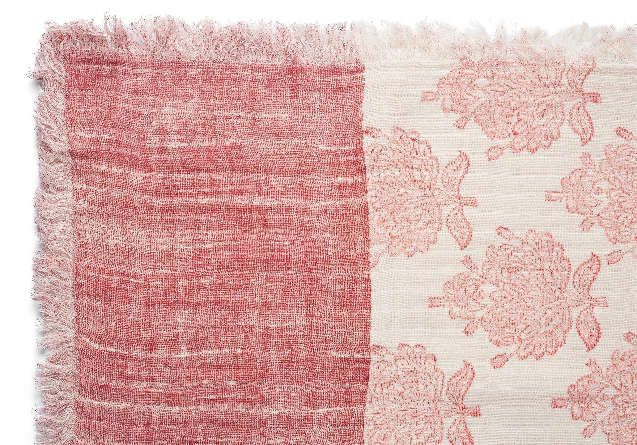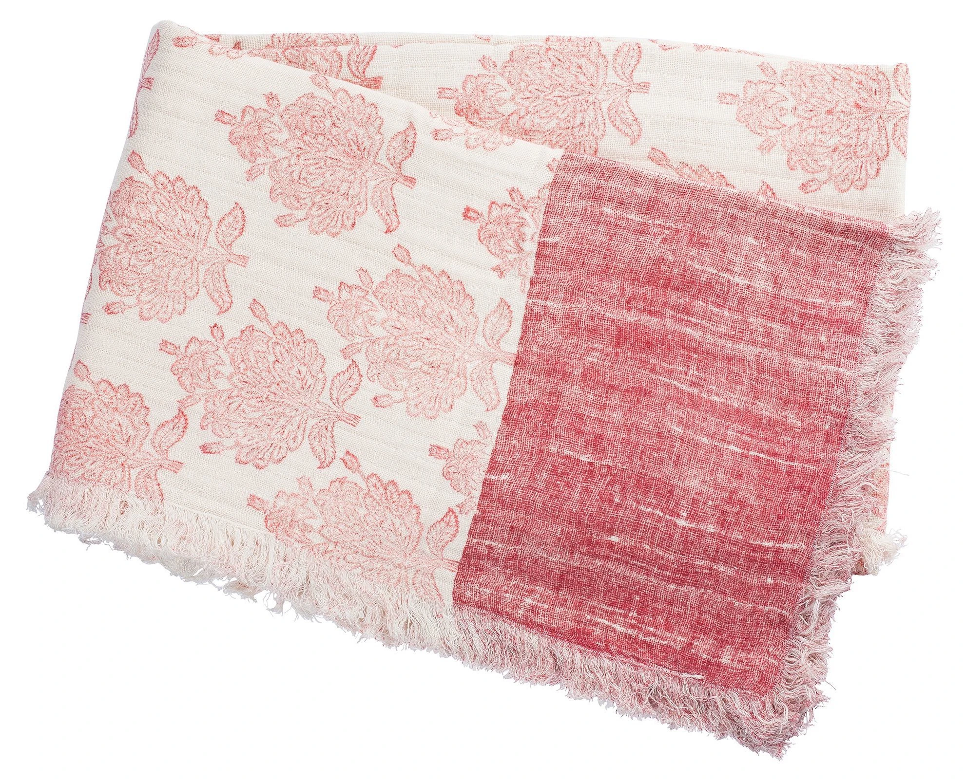 Designed in collaboration with Inka exclusively for One Kings Lane: Perfect for tossing over a sofa or folding at the foot of the bed, this lightweight cotton throw is block-printed by hand with a beautifully detailed floral repeat in a soft red hue. Plush eyelash fringe adds a stylish finishing touch. Due to the handmade nature of this piece, variations in color, tone, and pattern may occur.