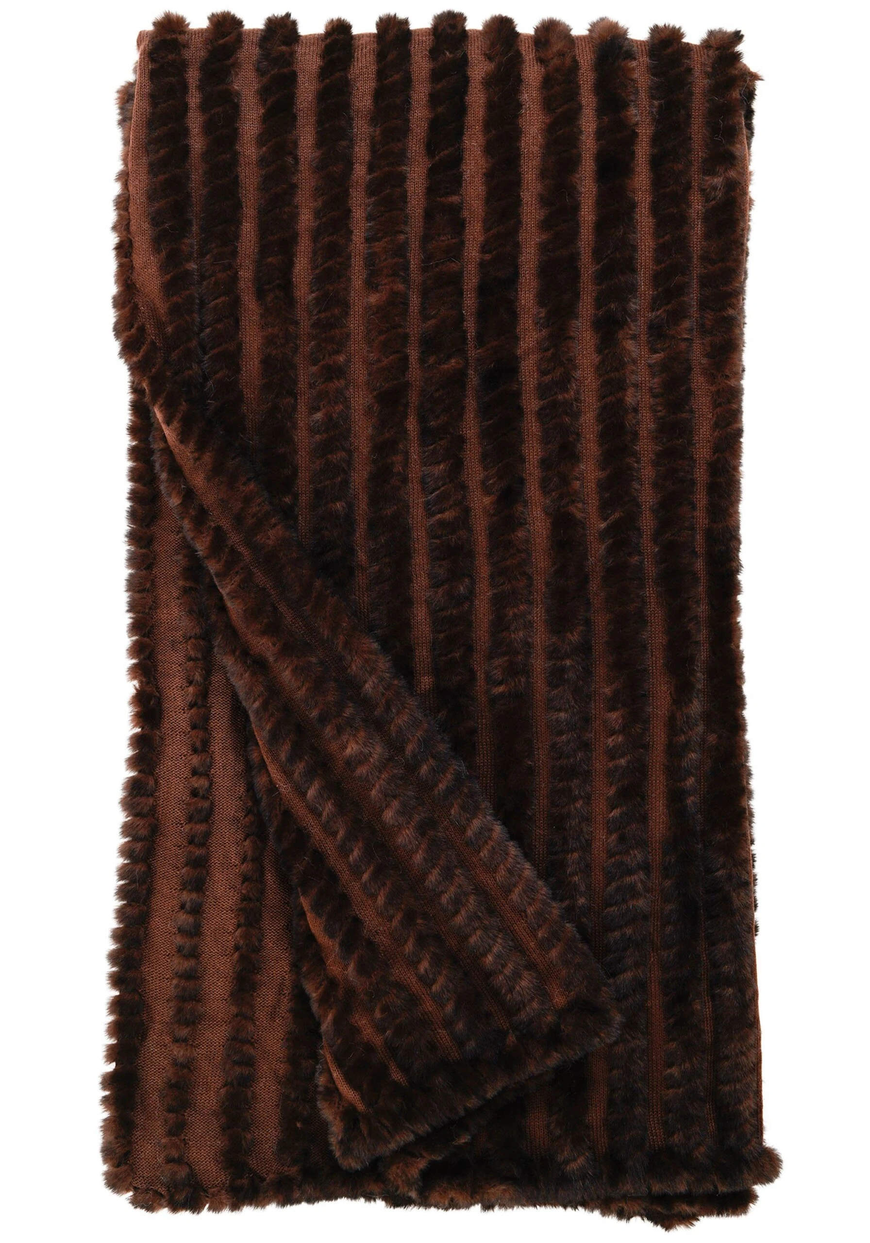Inch-wide cables of faux fur that have been whip-stitched by hand give this knit throw its textural intrigue. Not only is the throw sumptuous and toasty, but it’s also machine-washable.