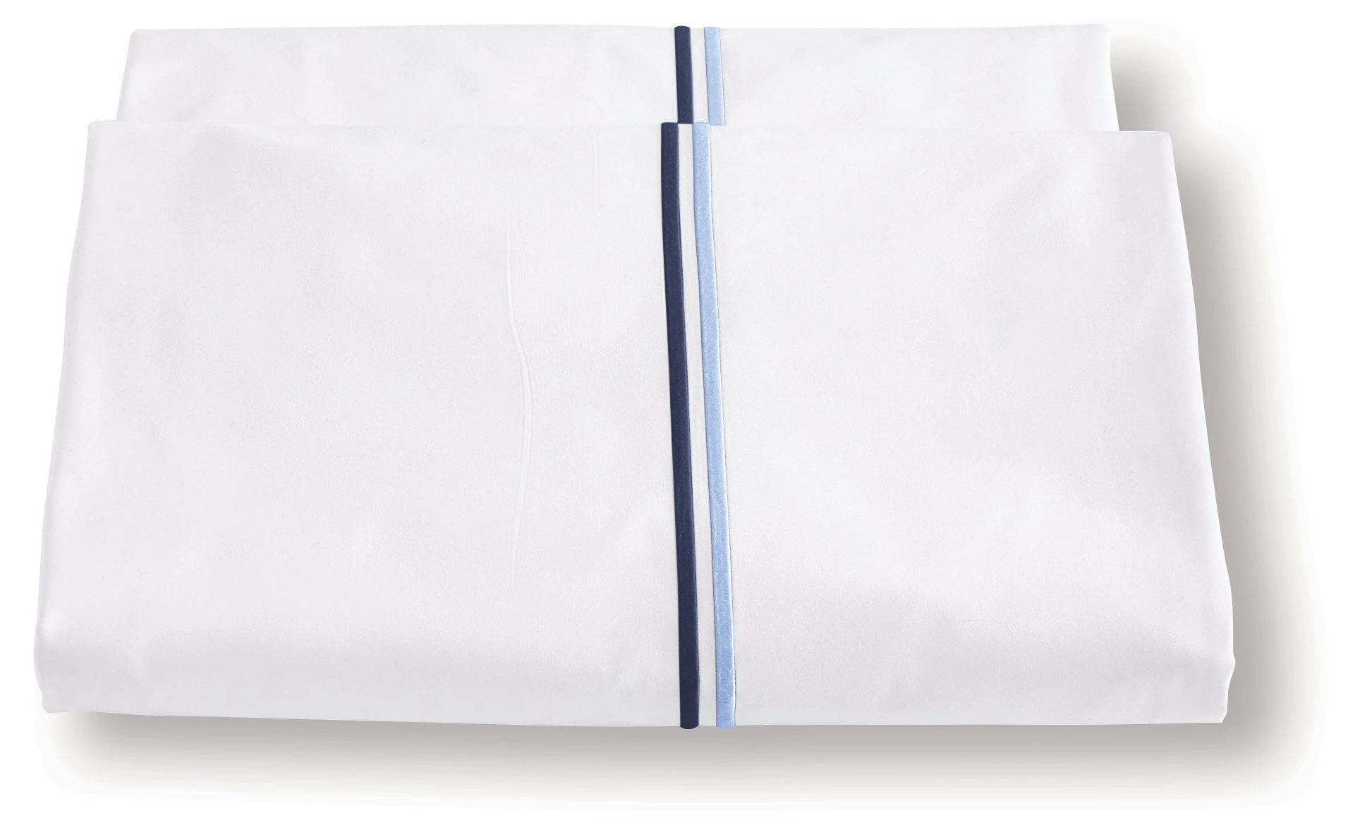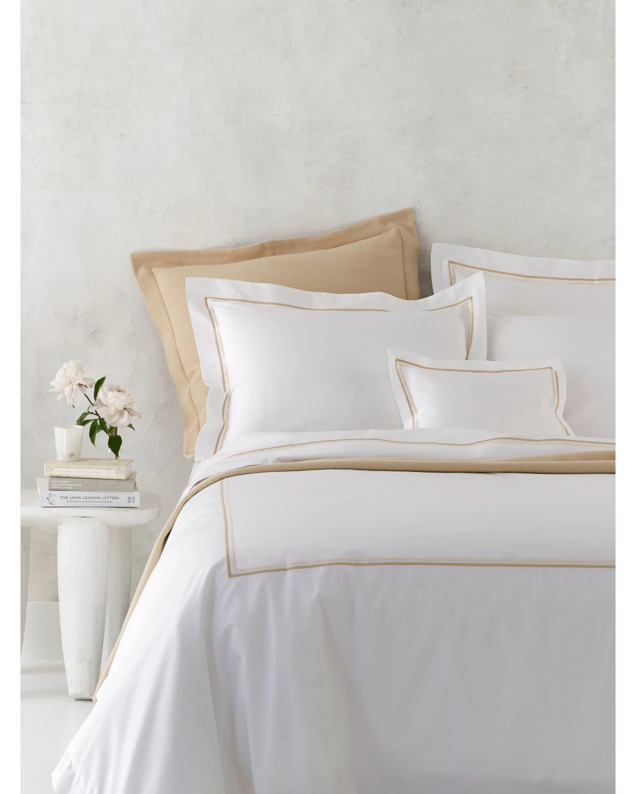 Crafted of premium cotton percale, this duvet cover is finished with two rows of contrasting satin-stitched embroidery. All Matouk fabrics are OEKO-TEX Standard 100 certified, meaning they are safe for you and for the planet.Â
