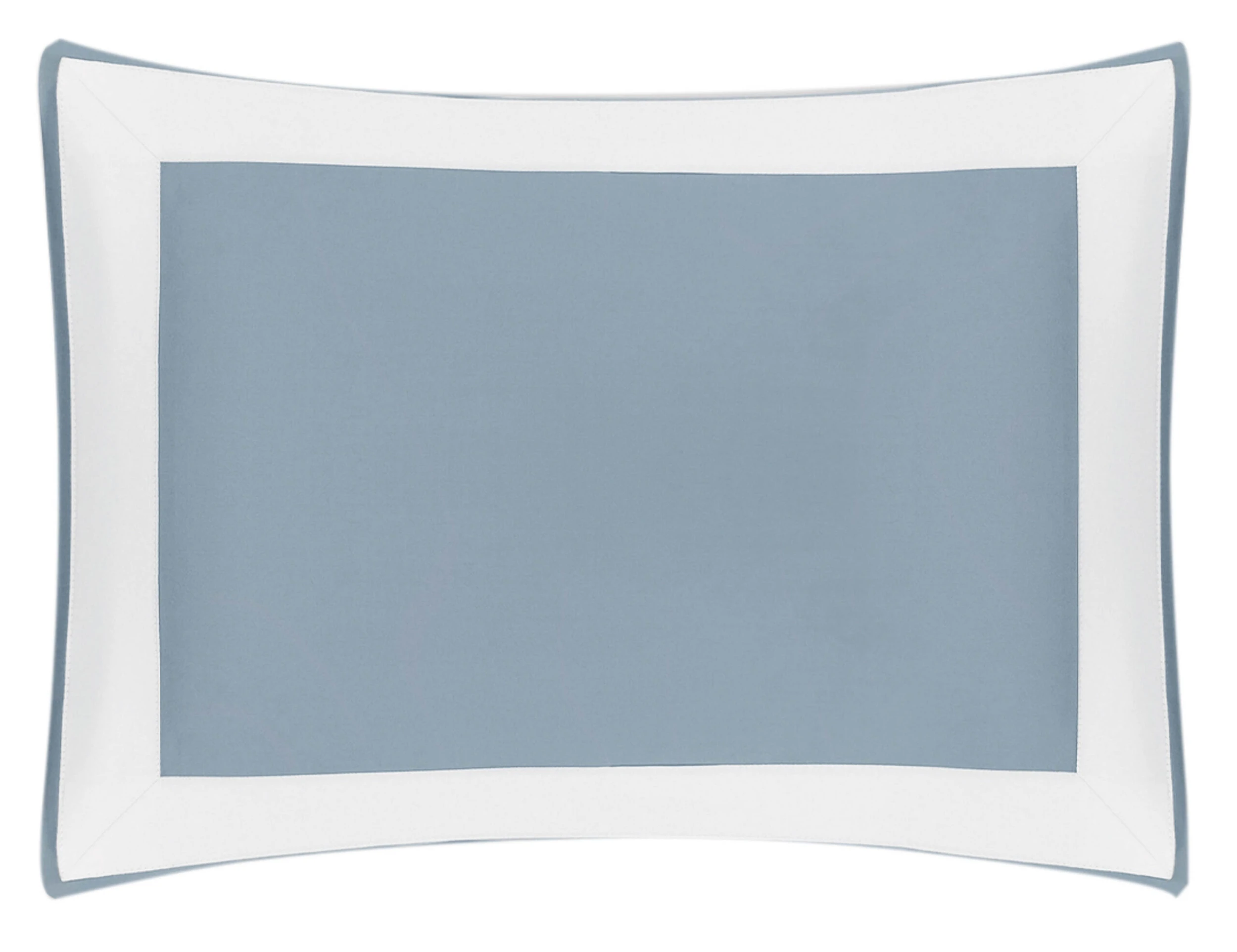 The white appliqué border provides a tailored complement to this sham’s fresh blue ground. The sham is made of Egyptian cotton sateen with an impressive 615-thread count for lightweight sumptuousness.