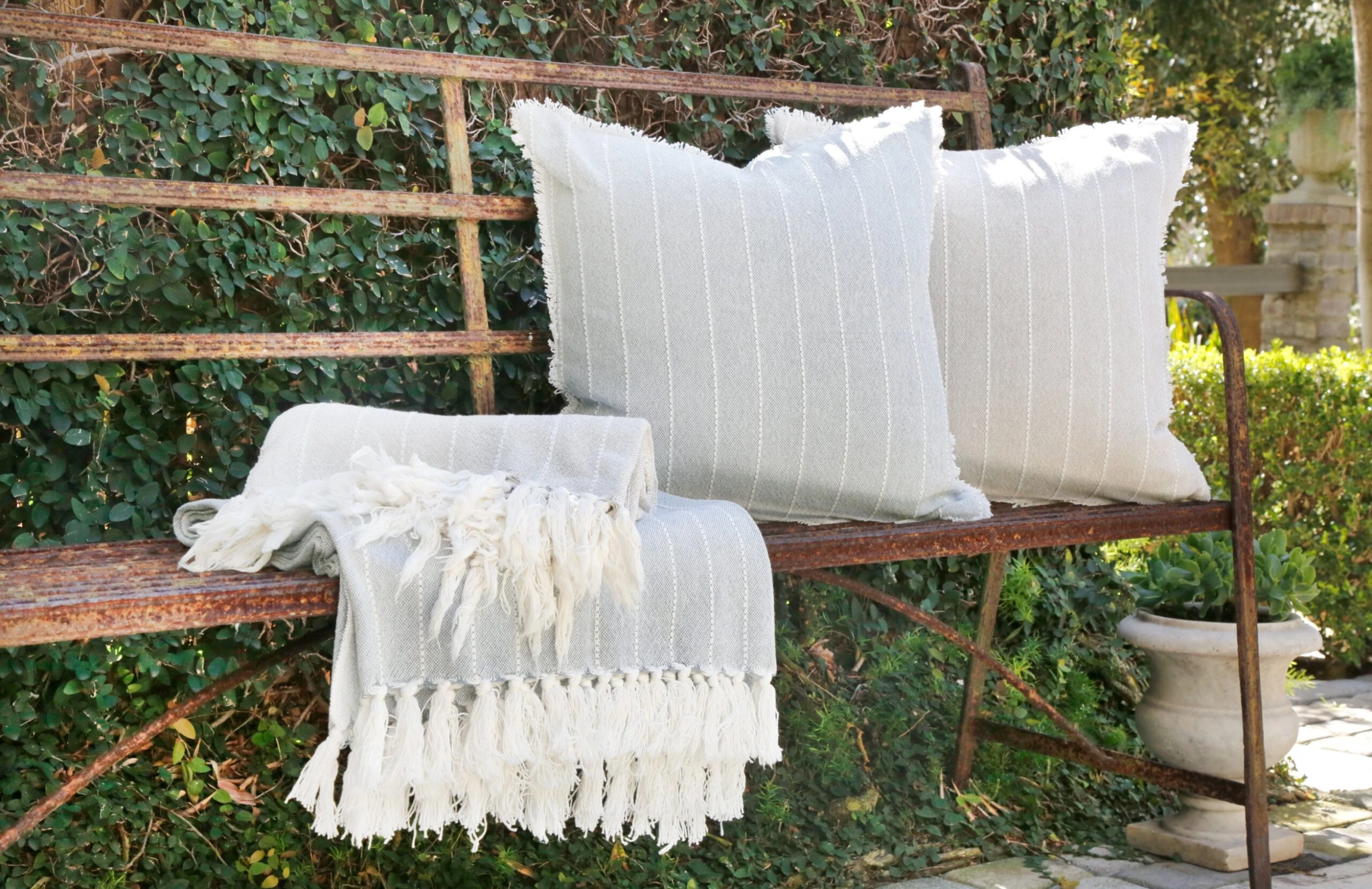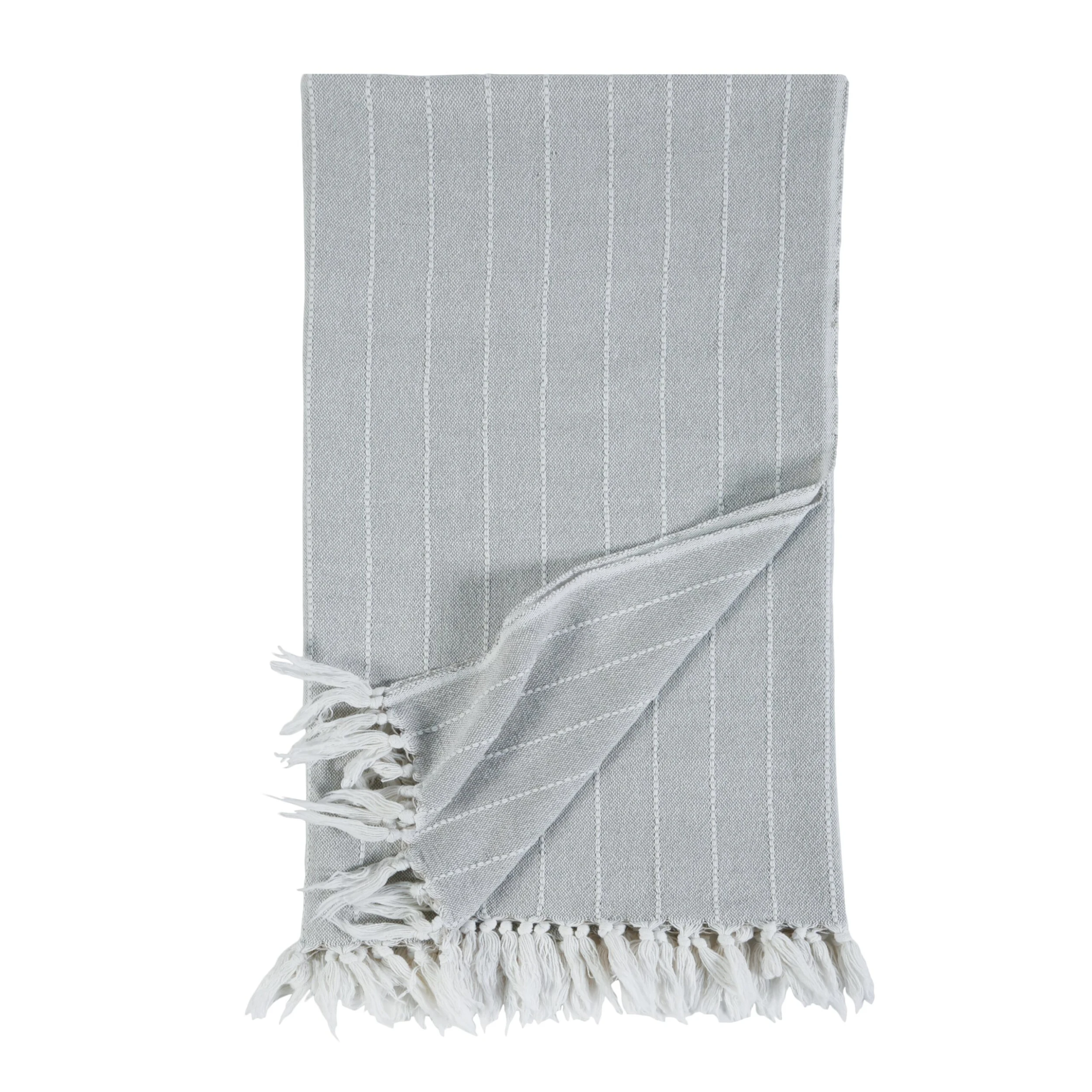 Made of hand-loomed cotton with interwoven pinstripes and fluffy tassels, this throw is delightfully soft, blissfully cozy, and wonderfully stylish.