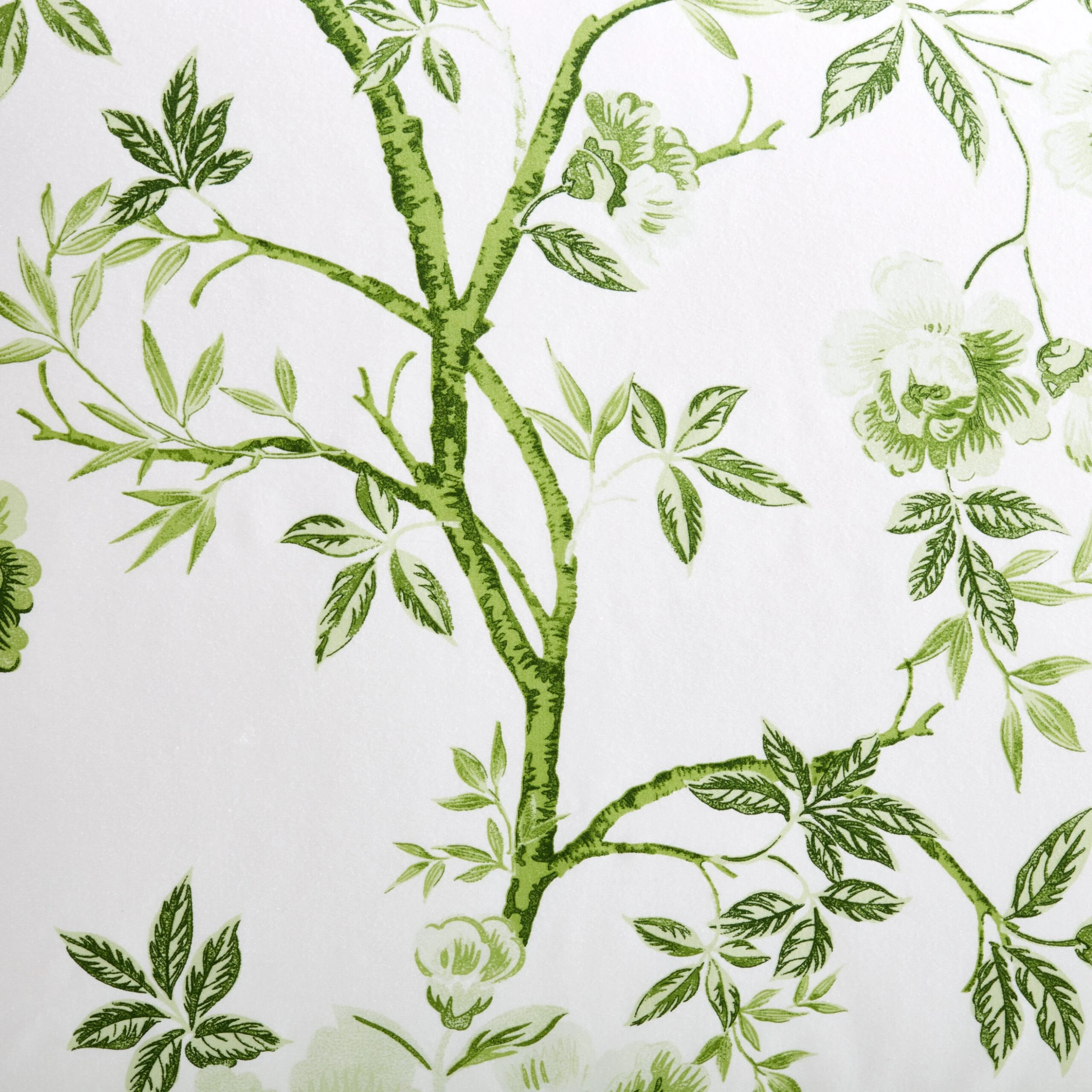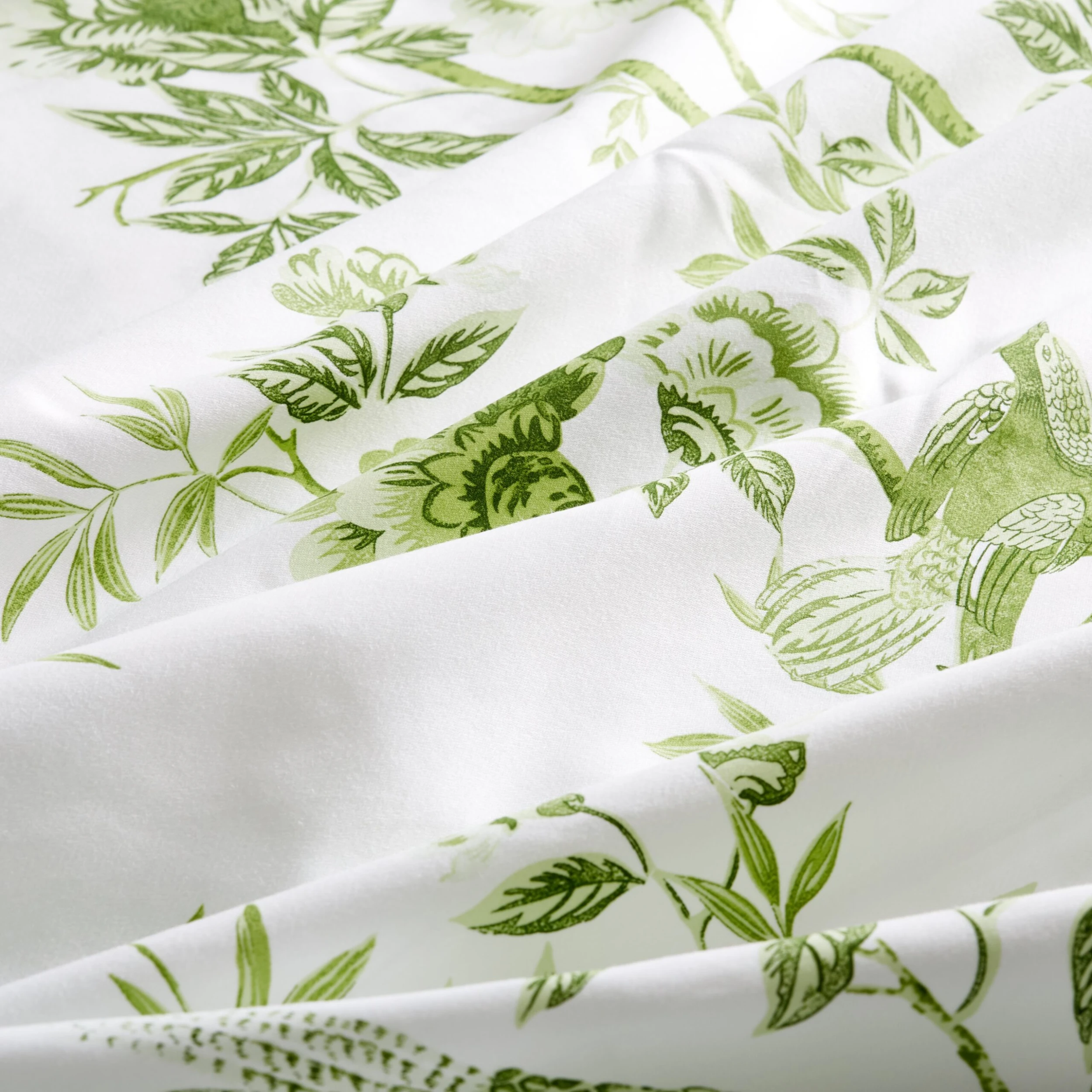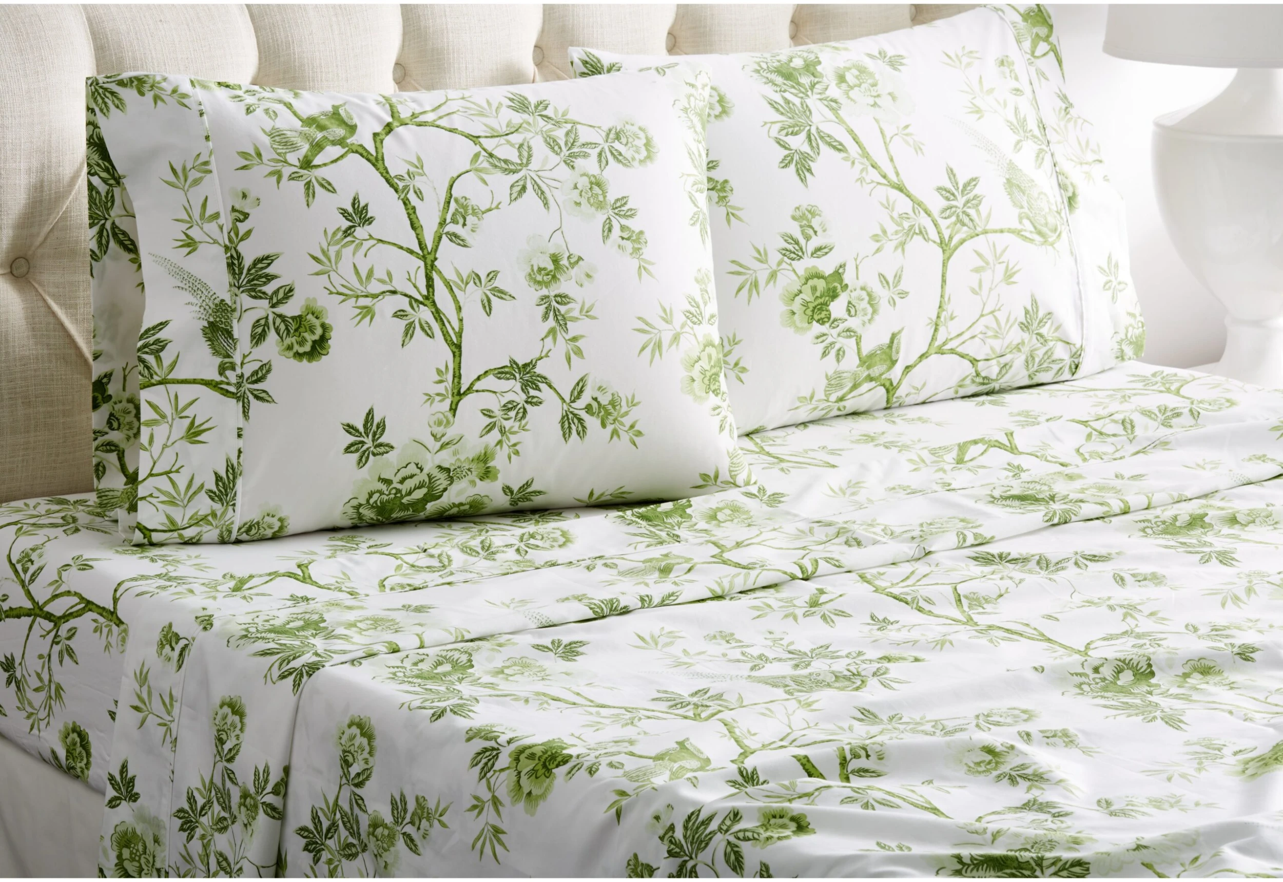 A fresh foundation for the bed, this cotton sheet set features a traditional floral pattern rendered in sage green and white.