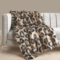 This oversize throw has all the sumptuousness, warmth, and elegance of real leopard fur, but it’s made of cruelty-free materials. The velvety fabric on the reverse is equally luxurious.