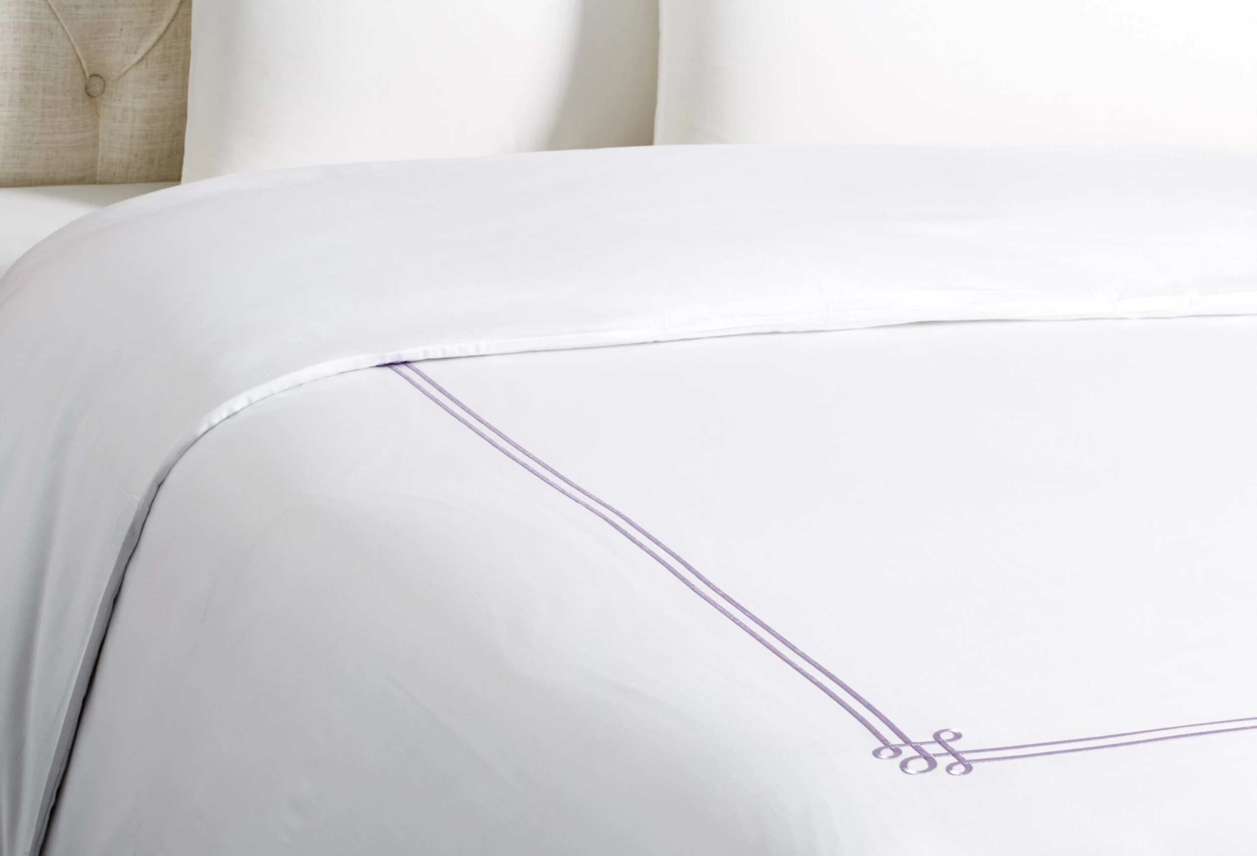 Elegant loop embroidery adds a sophisticated finishing touch to this exquisite Egyptian cotton sateen duvet cover, woven in Italy and artfully embroidered in the USA.