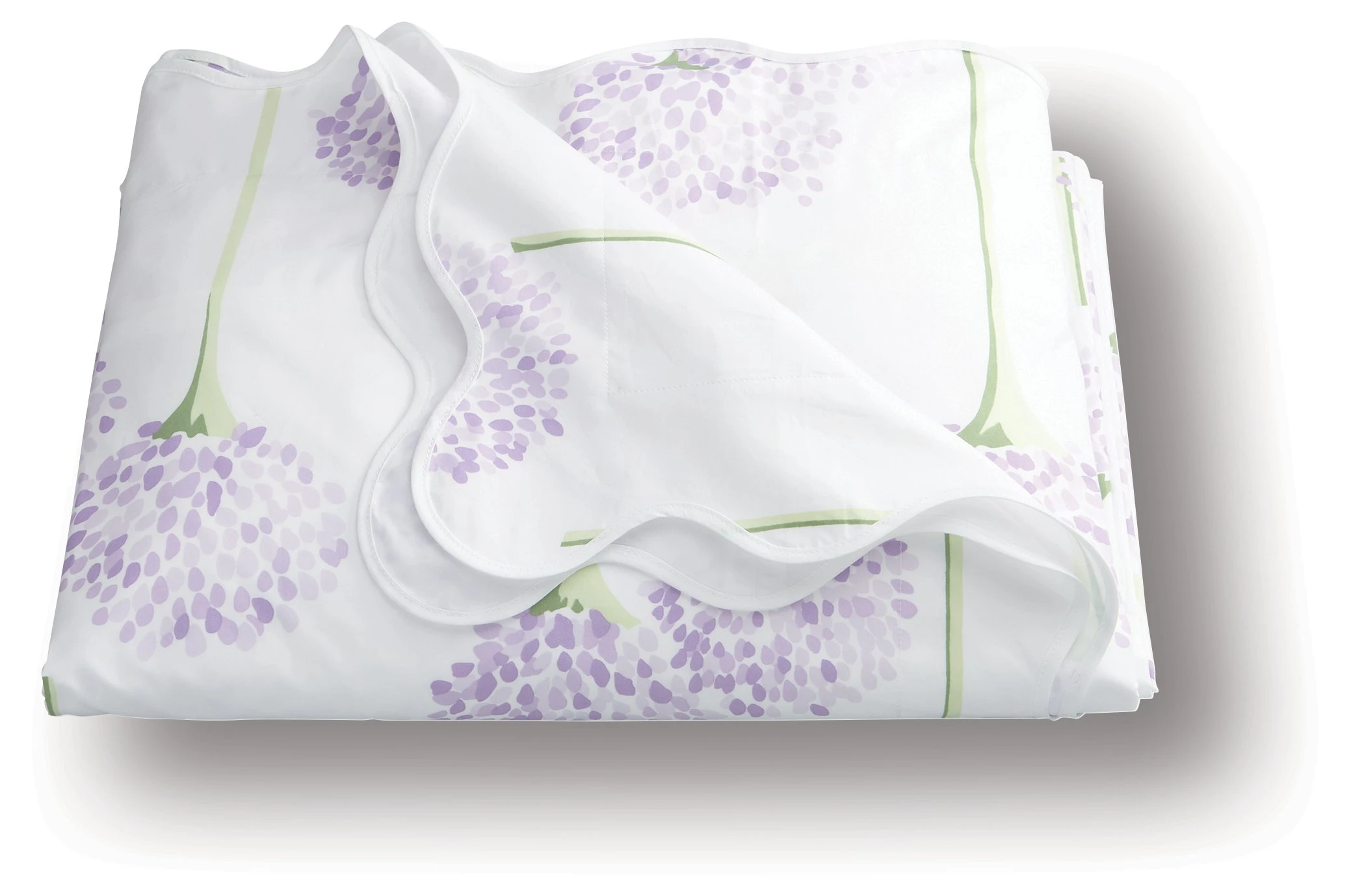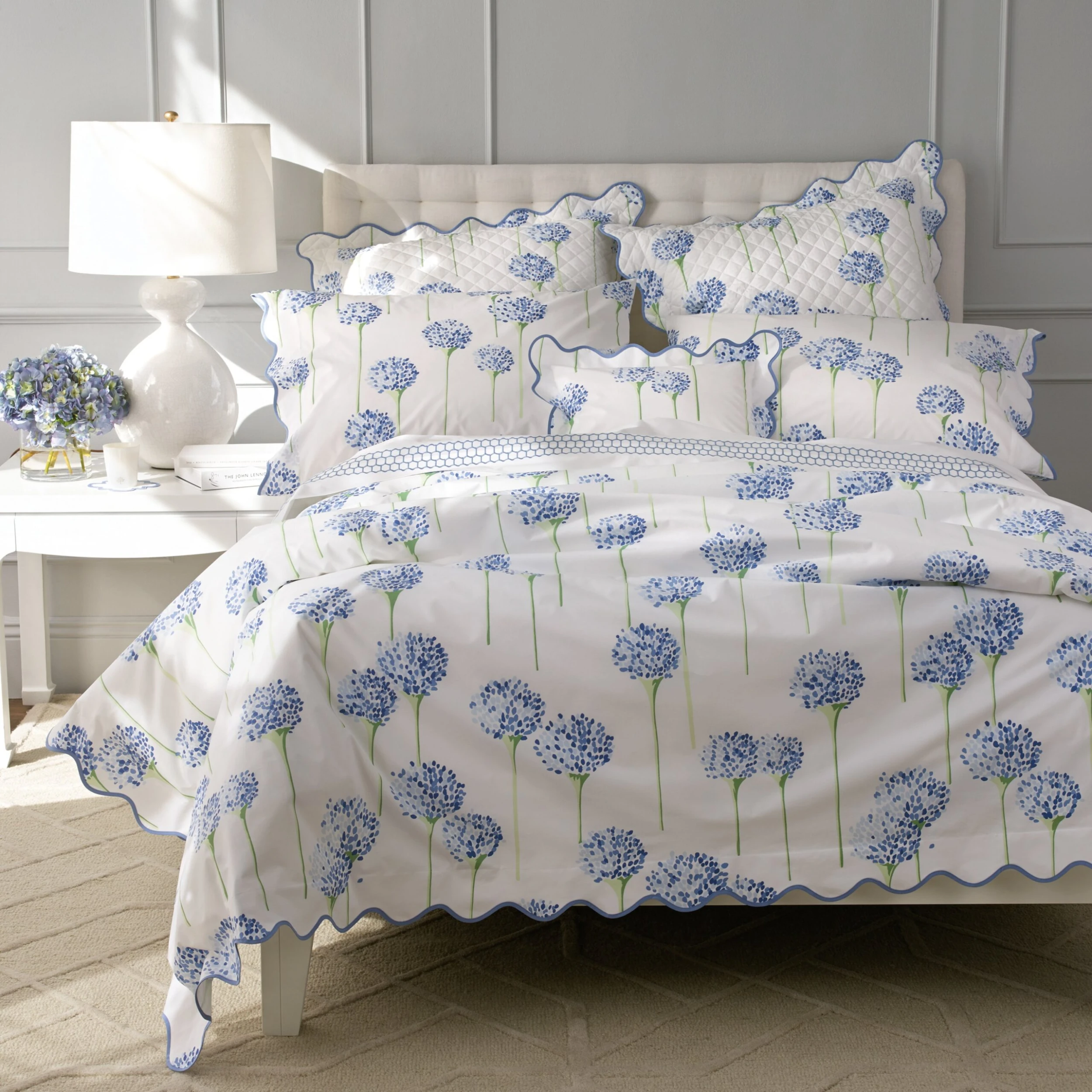 Made of 500-thread-count cotton percale and adorned with a pattern of playful allium flowers, this charming duvet cover is finished with taped scalloped edges. All Matouk fabrics are OEKO-TEX Standard 100 certified, meaning they are safe for you and for the planet.Â