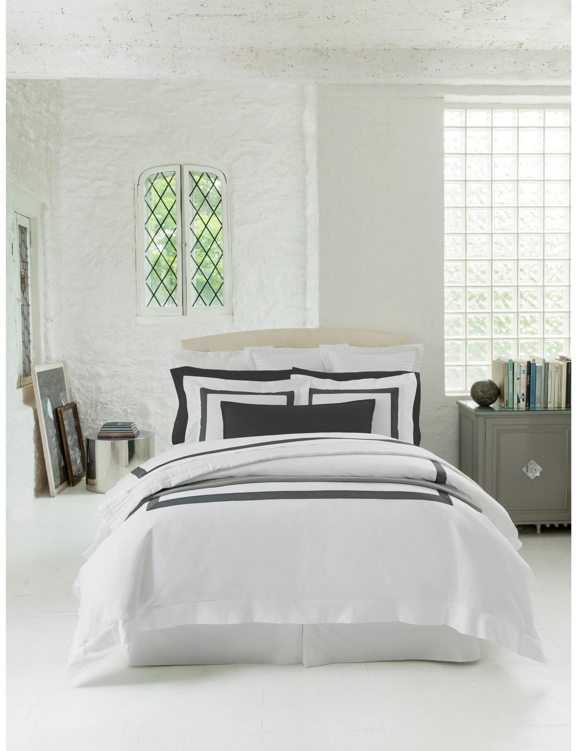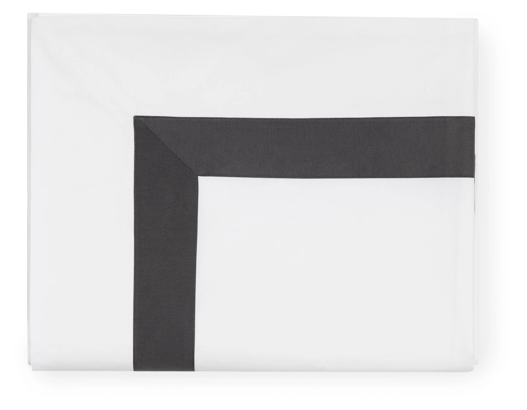 Made from smooth and crisp Italian-woven Egyptian cotton percale, this modern flat sheet is embellished with a band of contrasting Italian-woven Egyptian cotton sateen appliqué for a bold, graphic finishing touch.