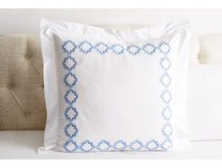 This exquisite Egyptian cotton sham, offered exclusively through One Kings Lane, is made from the finest Italian percale and embroidered in the USA with an elegant, two-tone quatrefoil design.