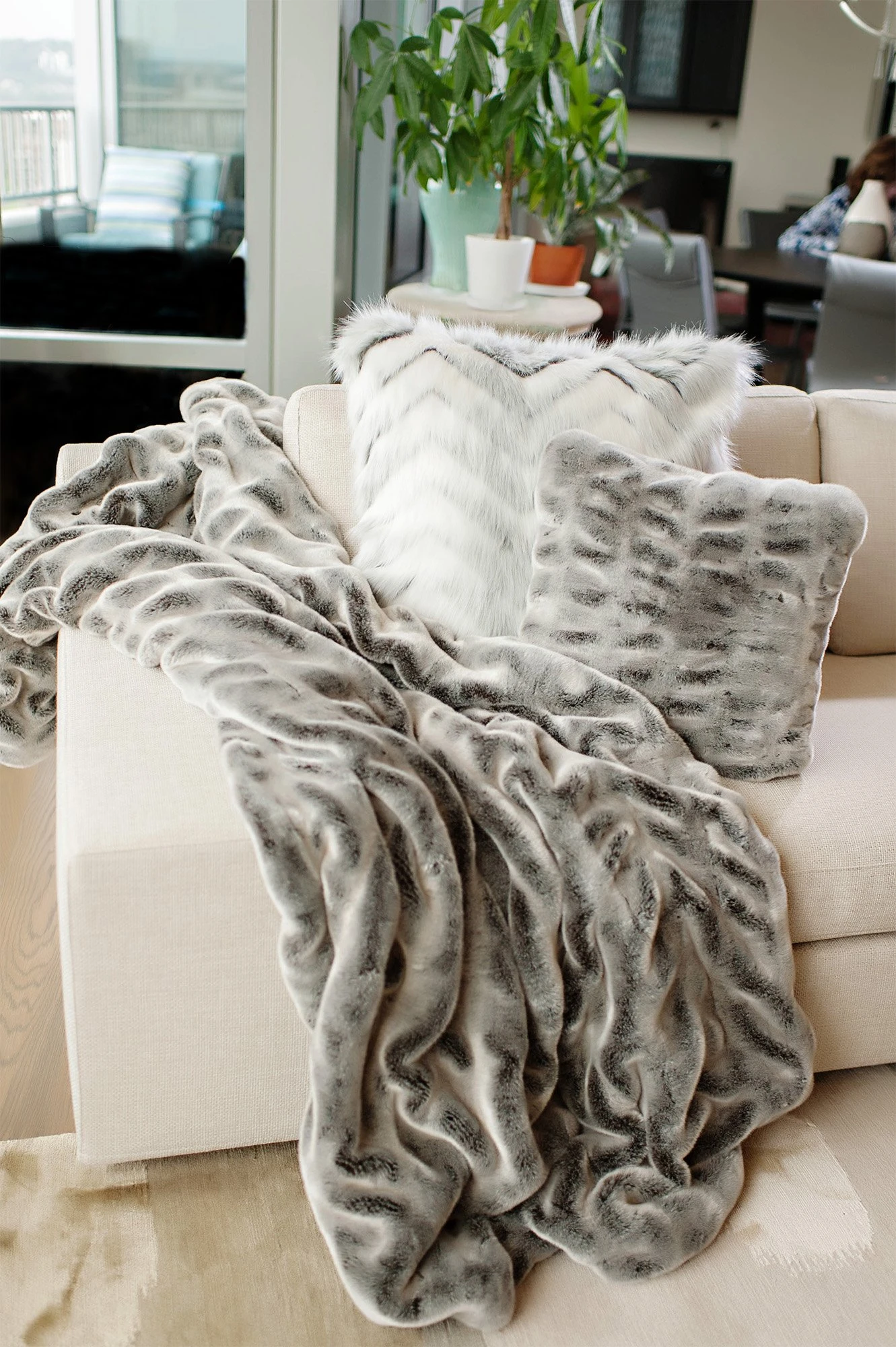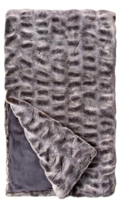 Ruching accentuates the luxe softness and graceful drape of this faux-fur throw; a variety of gray tones give it a lifelike depth sure to fool your friends. As well as being cruelty-free, the throw is machine-washable.