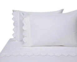 We love how this cotton coverlet’s classic white hue accentuates its wonderful embroidered texture, while its scalloped lace border provides a charming finishing touch.