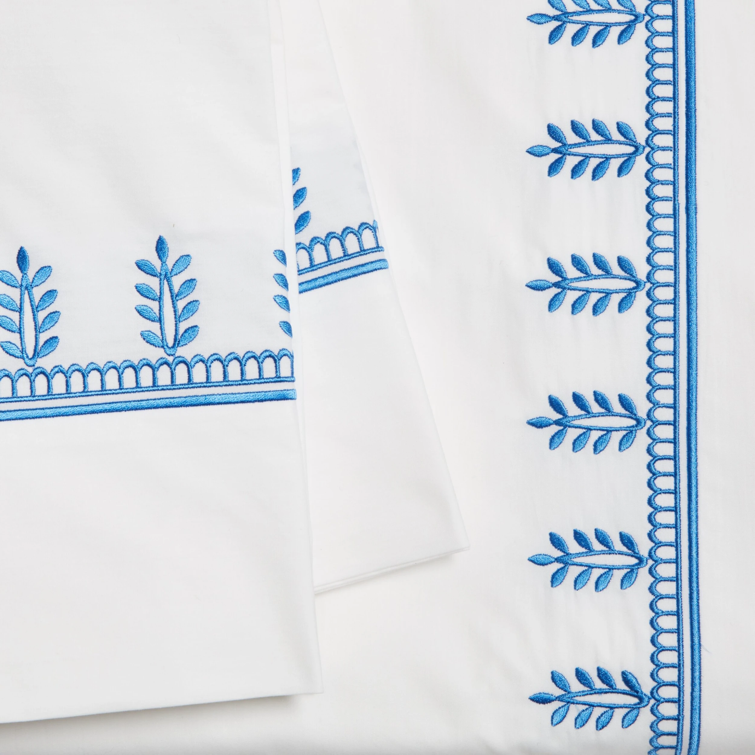 Exclusive to One Kings Lane: This exquisite cotton sheet set is made from the finest Italian percale and meticulously embroidered in the USA with an elegant botanical design at the hems of the flat sheet and pillowcases.