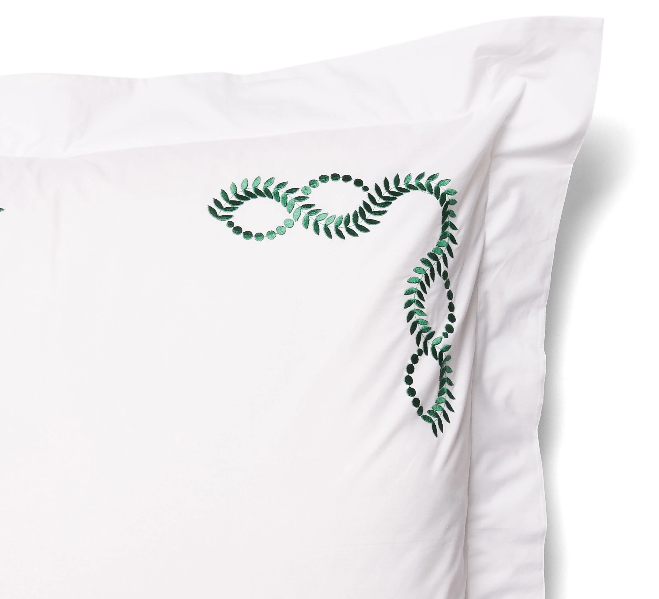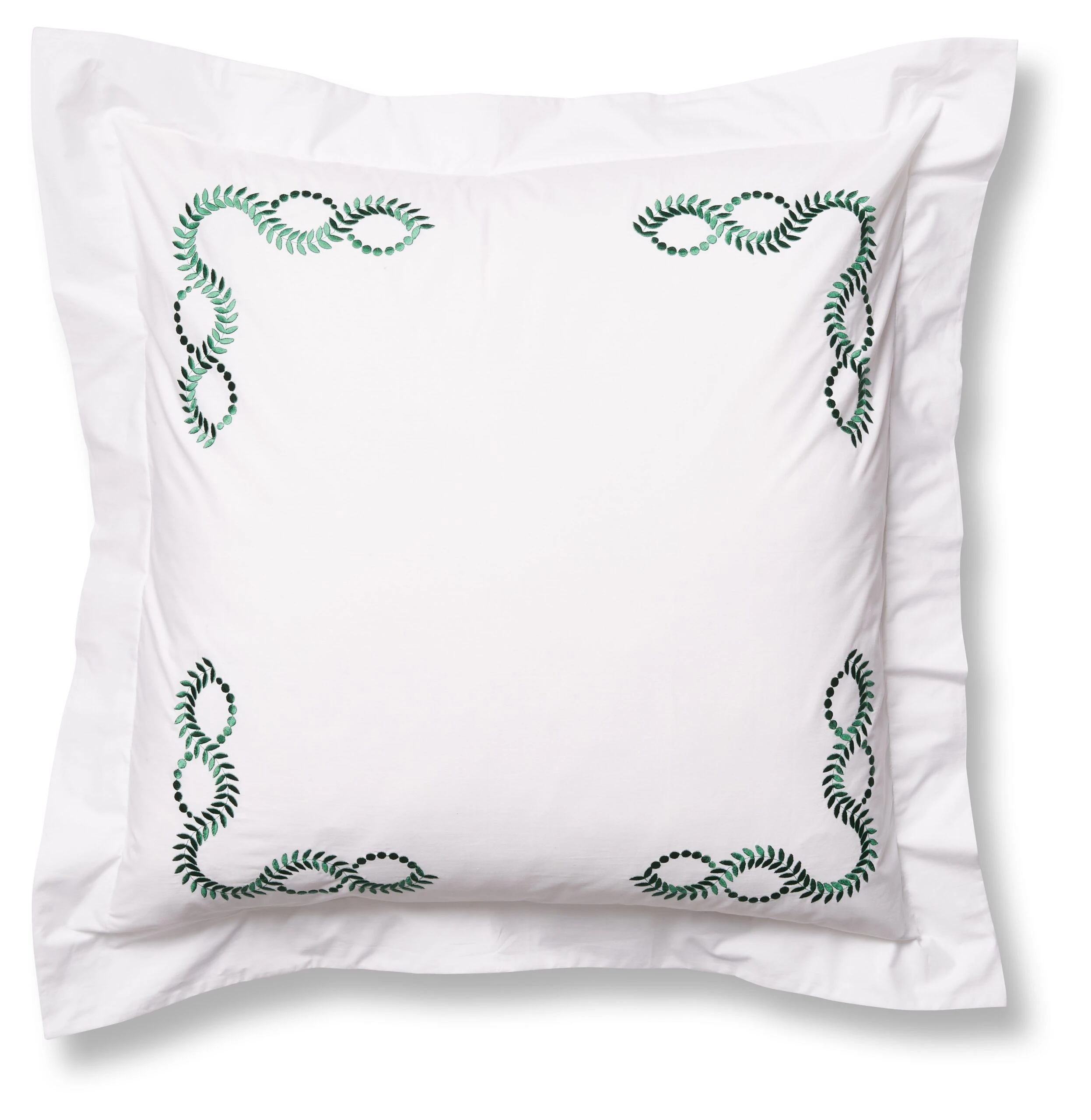 Exclusive to One Kings Lane: Embroidered vine motifs add a pop of color and a fanciful finishing touch to this exquisite Egyptian cotton percale Euro sham, woven in Italy and artfully embroidered in the USA.