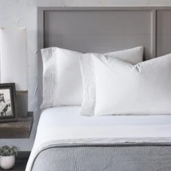 materials: egyptian cotton percale, woven in italy and embroidered in the usa